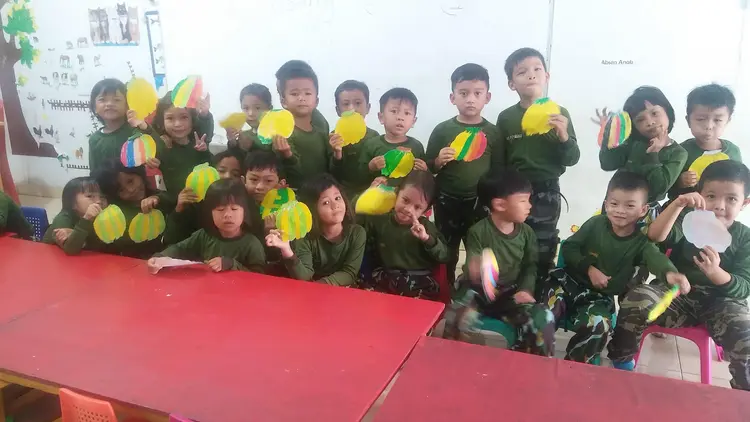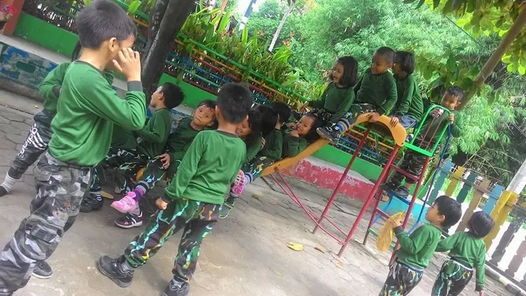 Kegiatan anak-anak paud di lingkungan sekolah, bermain dan belajar.
