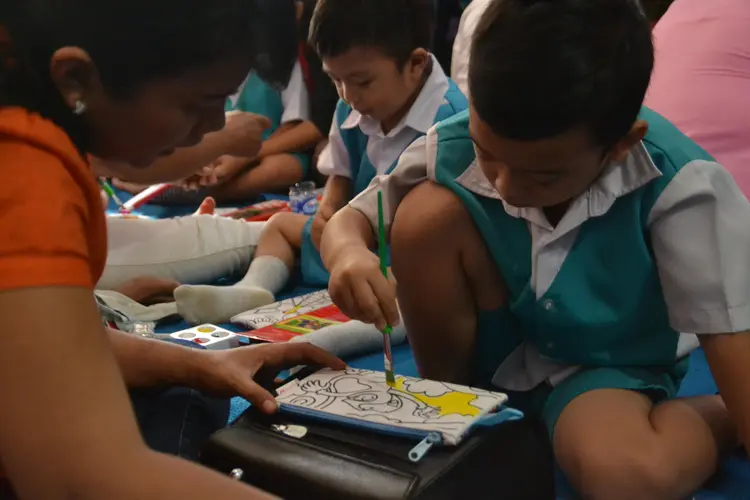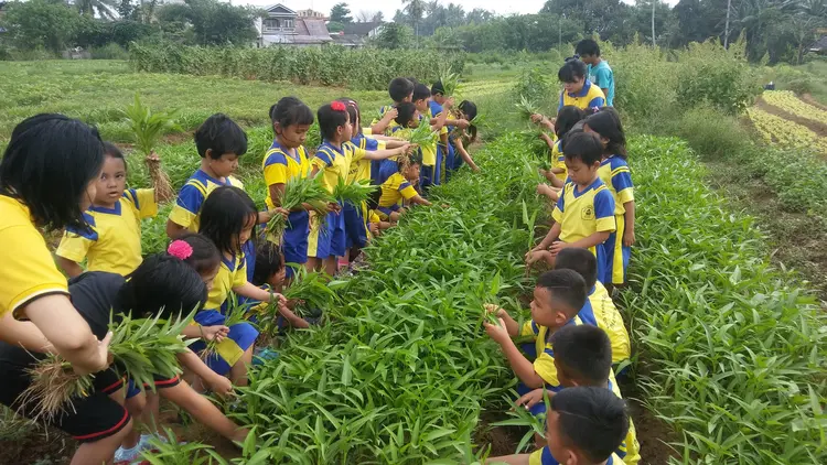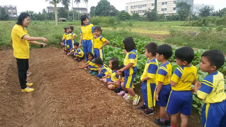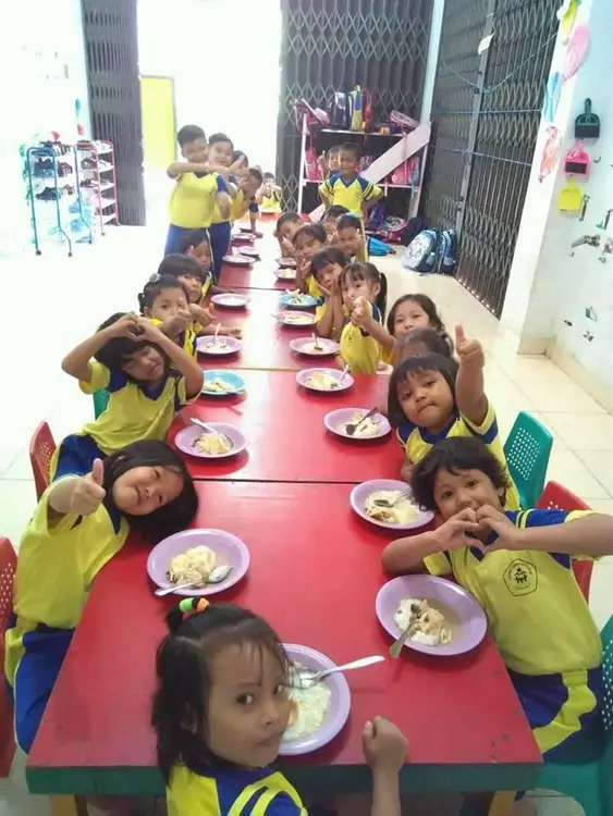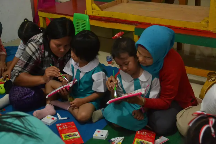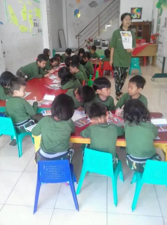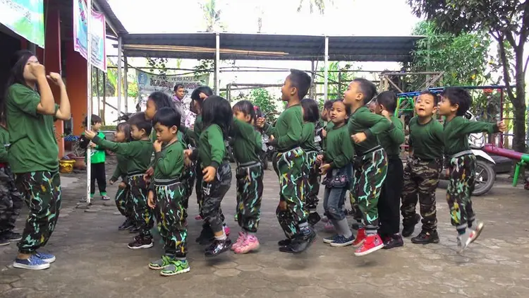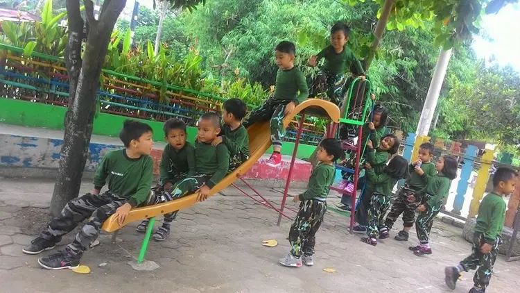 Kegiatan anak-anak paud di lingkungan sekolah, bermain dan belajar.